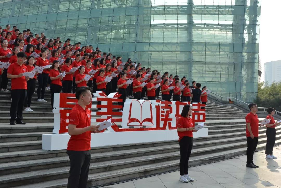 由中共河南省委宣傳部、中原出版?zhèn)髅郊瘓F指導(dǎo),河南省新華書店發(fā)行集團承辦的“慶祝新中國成立70周年‘最美讀書聲’全民閱讀活動”伴隨著悠揚熟悉的旋律和瑯瑯誦讀聲,9月28日上午10:30,百城同唱“我和我的祖國”慶祝新中國成立70周年——“最美讀書聲”全民誦讀快閃活動,在我省各市縣300多處文化地標(biāo)、核心區(qū)域或商業(yè)中心同時舉辦,全省10000多名新華人攜數(shù)萬群眾共同唱響“我和我的祖國”,用初心和使命為祖國70華誕獻禮。