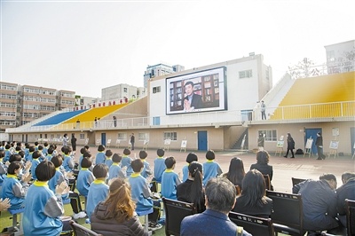 在視頻播放北京大學(xué)風(fēng)光旖旎的校園春景的背景下,該校拉開了“同讀紅色《火印》,共上思政大課——曹文軒給市十中師生的一堂閱讀課”活動(dòng)序幕。