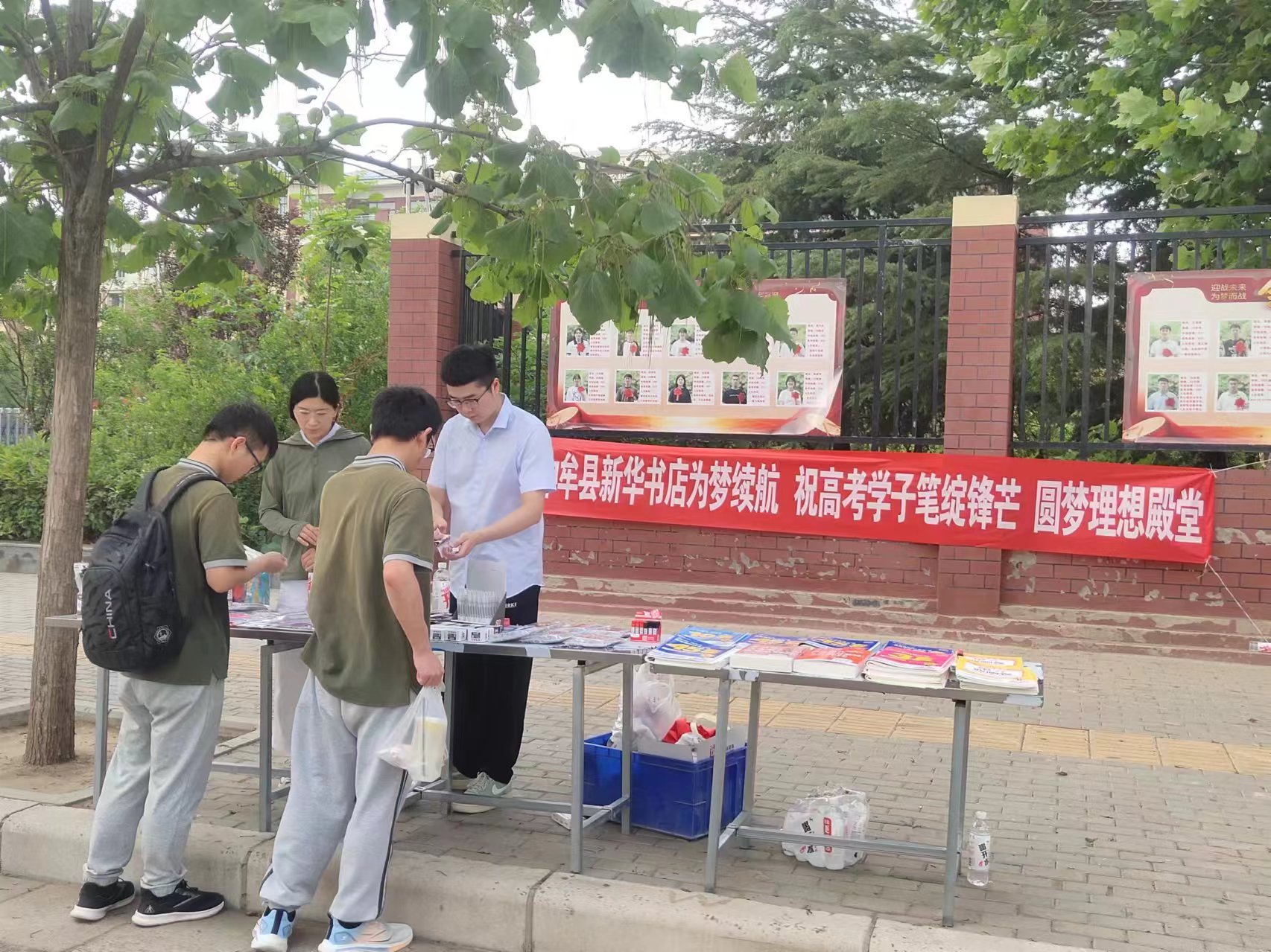 6月7日,高考首日,臺(tái)前縣新華書店在縣第一高級(jí)中學(xué)考場(chǎng)門口設(shè)立“愛心助考志愿服務(wù)臺(tái)”,為考生提供免費(fèi)飲用水,以實(shí)際行動(dòng)為學(xué)子們送上清涼關(guān)懷與誠(chéng)摯祝福,助力他們以最佳狀態(tài)迎戰(zhàn)高考。以點(diǎn)滴關(guān)懷緩解暑熱,用真誠(chéng)行動(dòng)傳遞溫暖,考點(diǎn)邊的“新華紅”成為高考期間一道溫暖人心的風(fēng)景線。