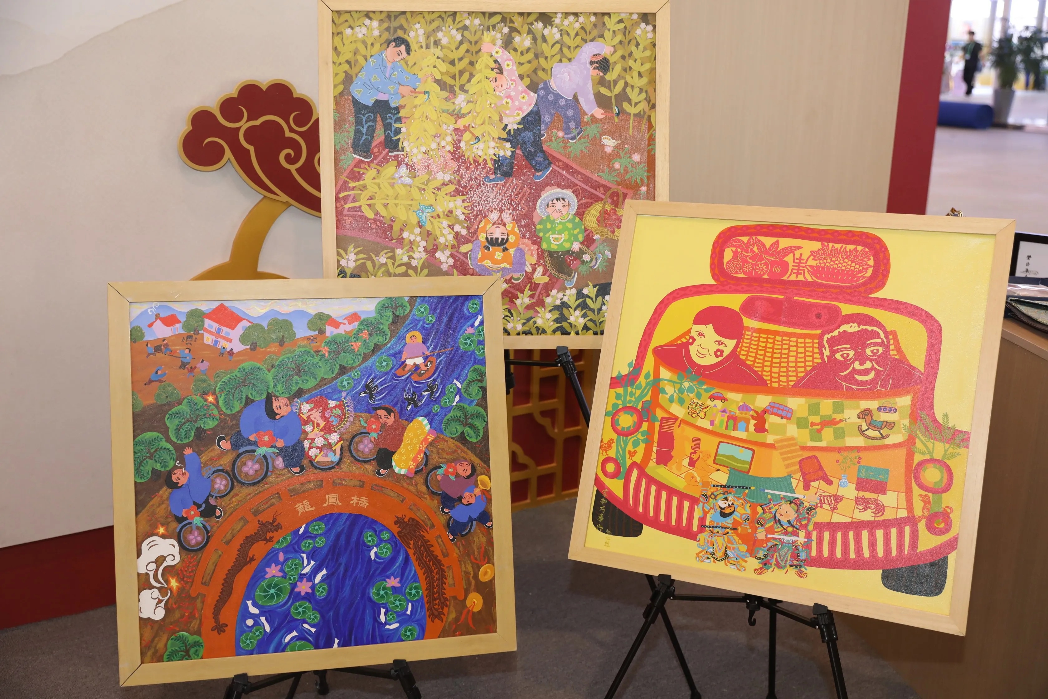 在展館的另一角,舞陽(yáng)農(nóng)民畫(huà)以其獨(dú)特的藝術(shù)魅力吸引著眾多觀眾。河南電子音像出版社副總編李亞楠介紹,圍繞這一省級(jí)非遺項(xiàng)目,他們打造了“一本畫(huà)冊(cè)、一套課程和一個(gè)微紀(jì)錄片”的項(xiàng)目矩陣。