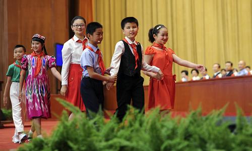 這是少先隊員代表向大會獻辭。