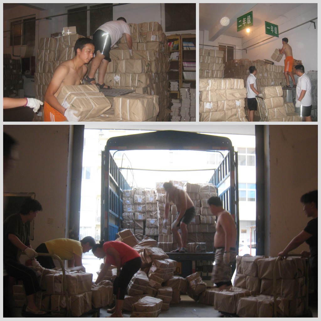 目前,2013秋季教材的發(fā)運工作已經(jīng)步入了高峰期,為了達(dá)成“課前到書,人手一冊”的目標(biāo),衛(wèi)輝市店業(yè)務(wù)科全體員工加班加點,犧牲節(jié)假休息時間,頂著高溫?zé)崂嘶蛘弑┯暌u擊等惡劣天氣,全身心投入到教材、教輔的發(fā)運工作中。雖然大家臉頰上冒著汗珠,甚至有的光起了膀子,但樂此不疲的勁頭展現(xiàn)了朝氣蓬勃、團結(jié)向上的精神面貌。據(jù)該店員工表示,等到中小學(xué)生開學(xué)時,手捧一本本嶄新的教材,滿心幸福的笑聲充盈著整間教室,我們再苦再累也是值得的!
