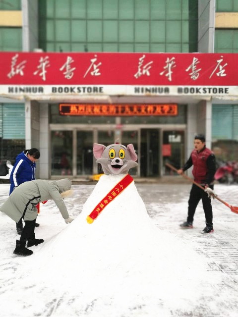進(jìn)入冬季,衛(wèi)輝市店時(shí)刻關(guān)注天氣變化提前備好掃把、鏟雪板等相關(guān)掃雪工具,通知全店各部門提前做好雨雪天氣應(yīng)急方案。1月4日清晨,2018年的第一場大雪已將路面覆蓋,一大早,書店職工自發(fā)組織清理中心門市部的路面積雪,把積雪堆成卡通雪人,喜迎顧客光臨。