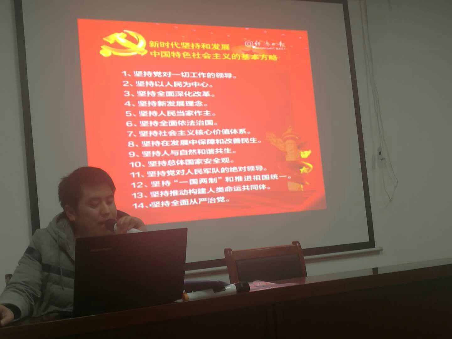黨的十九大精神催人奮進、鼓舞人心。獲嘉縣店始終把學習宣傳貫徹黨的十九大精神作為首要政治任務,為了不斷將十九大精神引向深入,使廣大黨員干部職工學懂、弄懂,進一步堅定文化自信,做好宣傳黨的思想文化的主陣地作用。1月16日下午,縣店邀請縣委黨校教師唐星為該店黨員干部職工講授黨課“中國特色社會主義是改革以來黨的全部理論和實踐的主題”。