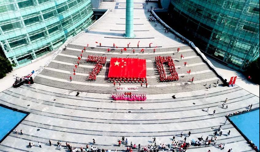 當(dāng)日上午,鄭州市活動現(xiàn)場共設(shè)8個分會場。在河南省藝術(shù)中心廣場前,400多名河南省新華書店員工深情誦讀并齊聲唱響《我和我的祖國》,展現(xiàn)了身處新時代、新征程中的新華人的驕傲與自豪。