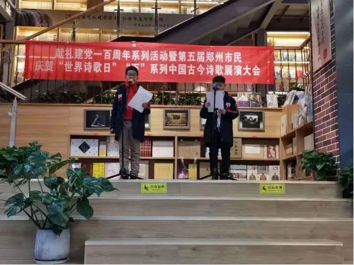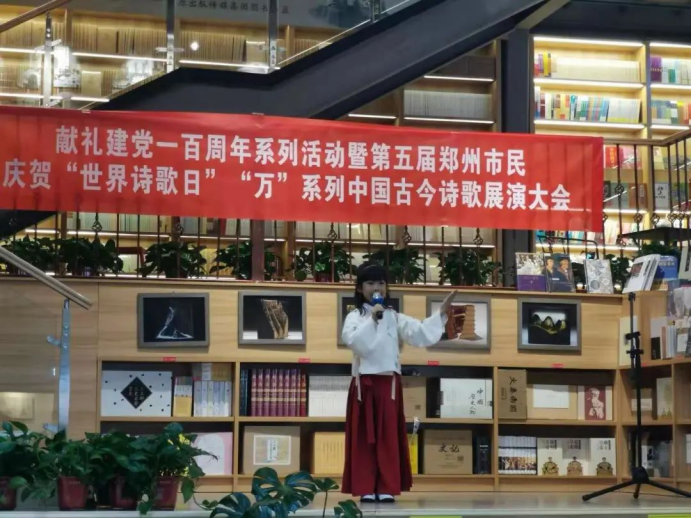 3月21日下午,獻禮建黨一百周年系列活動暨第五屆鄭州市民慶賀“世界詩歌日”“萬”系列中國古今詩歌展演大會,在示范門店黨支部尚書房花園路店(原省直書店)熱烈開場。本次活動由河南省新華書店發(fā)行集團省直書店、河南省中外經(jīng)典朗誦藝術團、鄭州大學出版社、新華書店教育中心、河南青年時報社等文化機構聯(lián)合舉辦。