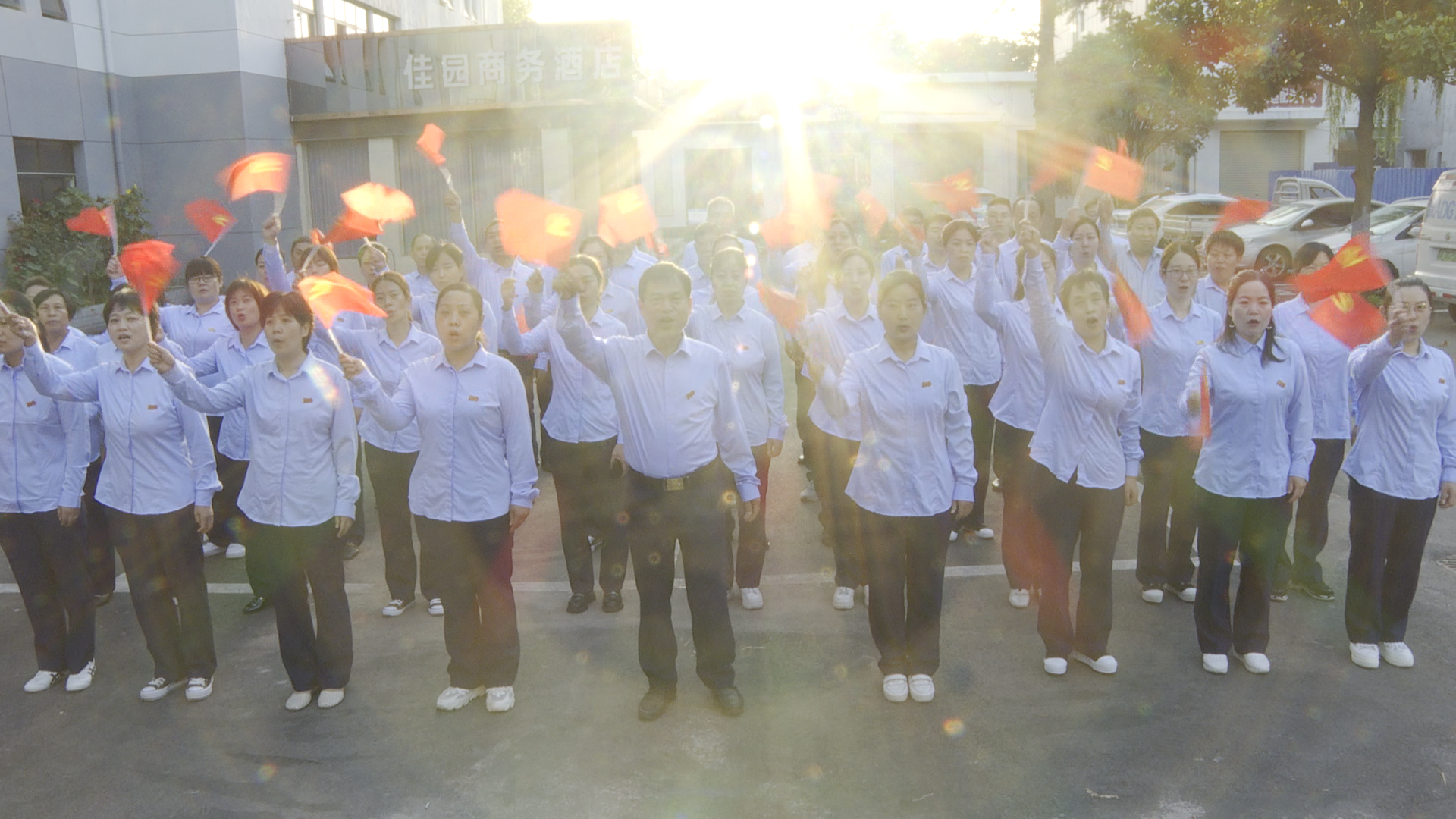 2021年是中國共產黨成立100周、中華人民共和國成立72周年,為激發(fā)愛國熱情,凝聚奮進力量,展現(xiàn)新華風采。10月1日清晨6點30分,登封市店總經理崔朝軍帶領全體干部職工在辦公樓停車場集合完畢,開展“賀國慶、展風采”慶祝活動。
