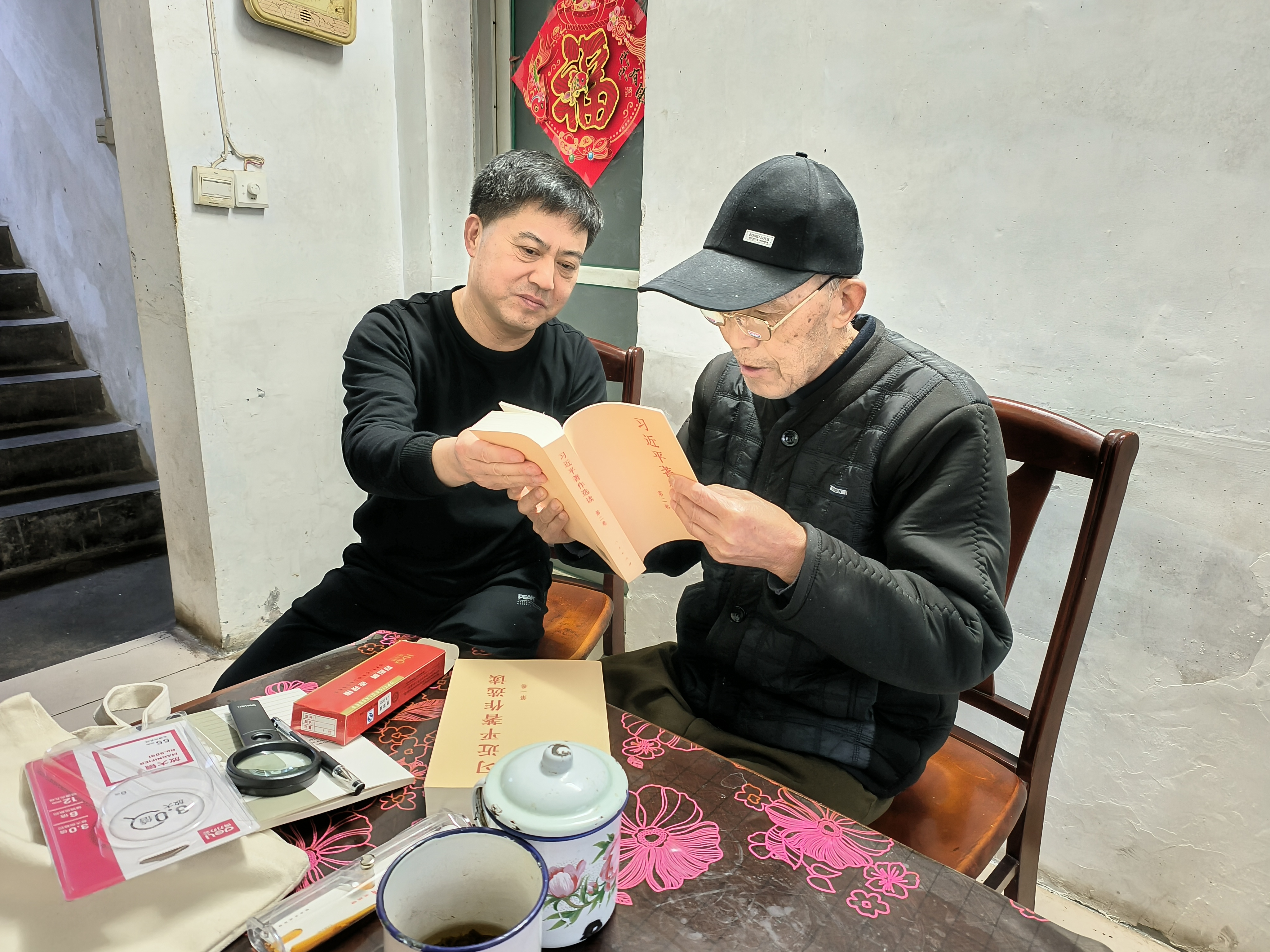 近日,確山縣店黨支部書記賀建格來到91歲高齡的縣店第二任黨支部書記陶守亭家中,為他送去《習(xí)近平著作選讀》《習(xí)近平新時(shí)代中國(guó)特色社會(huì)主義思想專題摘編》等學(xué)習(xí)資料和筆記本、老花鏡、放大鏡等學(xué)習(xí)用品,送上了黨組織的關(guān)懷和問候,聽取老書記對(duì)于開展主題教育的意見建議。
