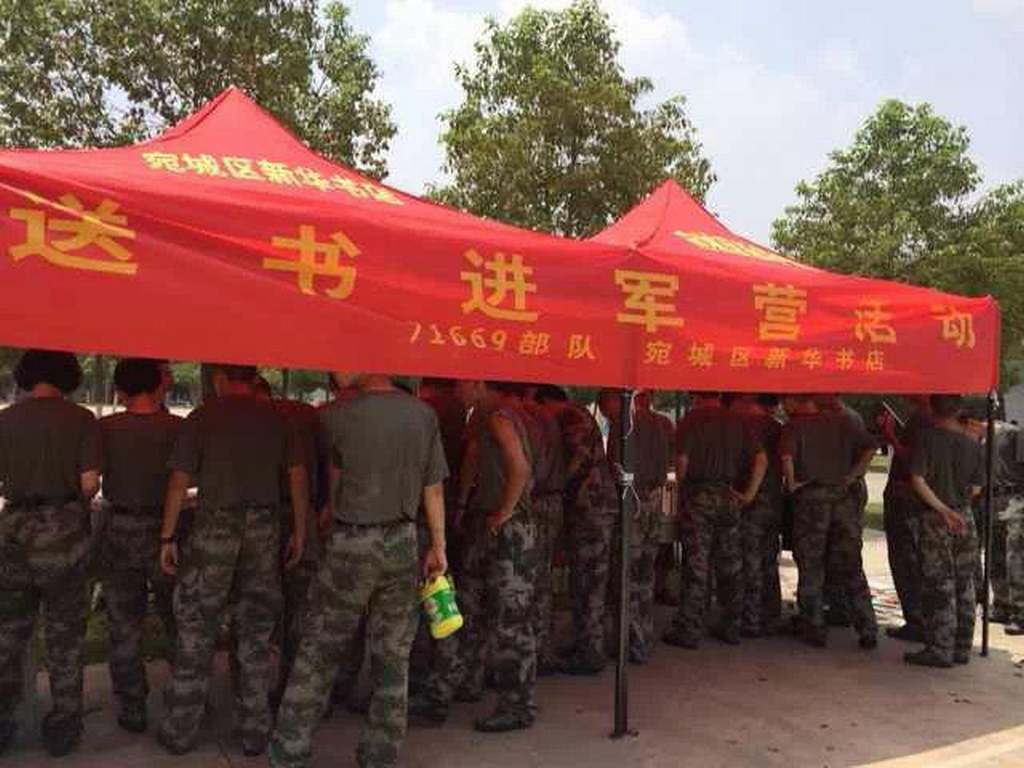 為慶祝“八一”建軍節(jié),宛城區(qū)店組織員工利用節(jié)假日,不畏酷暑,頂著烈日,開展“送書進軍營”慰問展銷活動。