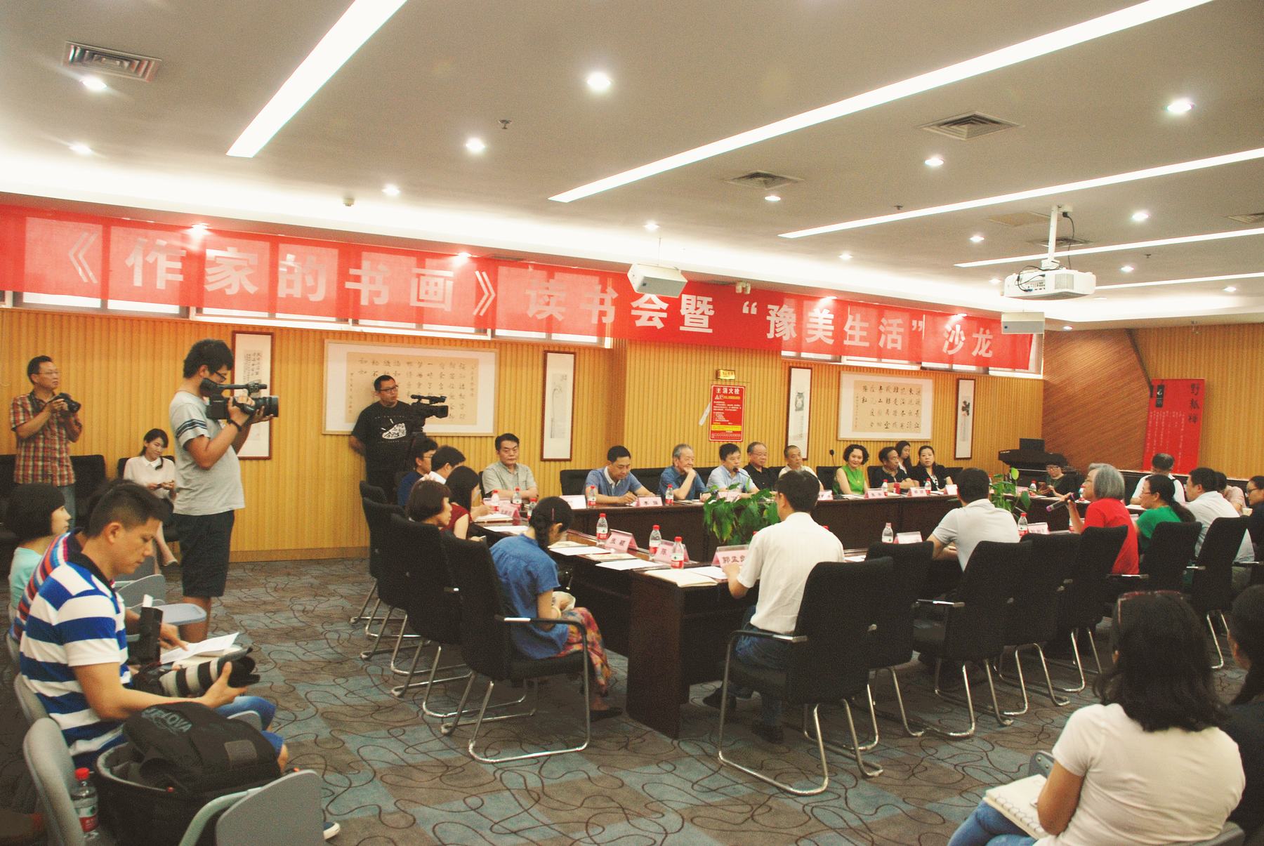2015年7月17日,“作家的書畫”讀書會暨“豫美生活”沙龍?jiān)诤幽鲜⌒氯A書店整體書房舉行。南丁、曹新林、謝安鈞、李強(qiáng)、吳行、張宇、邵麗、喬葉、馮杰、張鮮明、楊青、安琪、任瑜等我省文學(xué)界、書畫界、新聞出版界知名人士出席。這是由河南省新華書店發(fā)行集團(tuán)、河南美術(shù)出版社主辦,河南日報(bào)文體新聞部協(xié)辦的“作家的書畫”讀書會暨“豫美生活”沙龍,也是我省文化領(lǐng)域一次大腕云集的聚會。