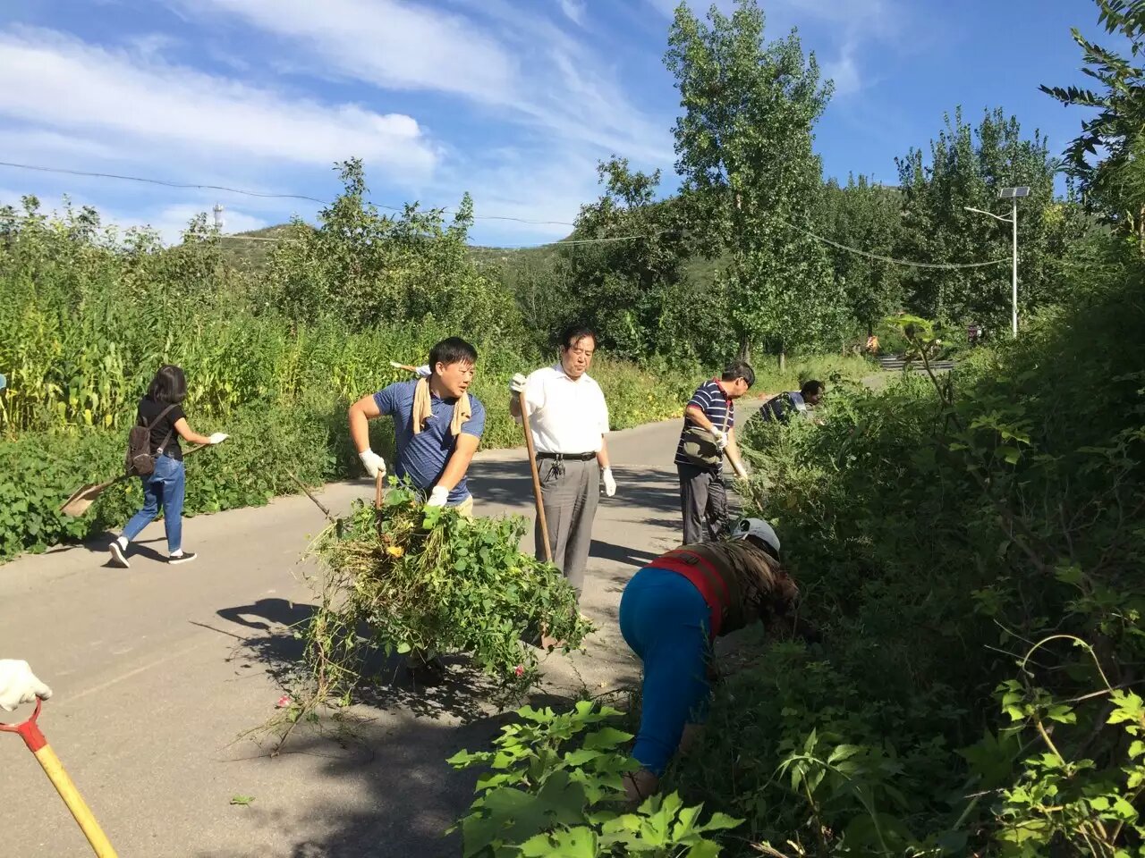 為深入開展“精準扶貧”工作,將“兩學(xué)一做”學(xué)習(xí)教育付諸行動,9月2日上午,焦作市店由主要領(lǐng)導(dǎo)帶隊,組織機關(guān)黨員到扶貧村——中站區(qū)許河村開展了一次黨員義務(wù)勞動;顒赢斕,烈陽高照,黨員們熱情不減,干勁十足。大家分成兩組,部分黨員在道路兩旁拔草鋤地、清理垃圾;另一部分黨員在為該村圖書閱覽室組裝貨架,并將圖書全部上架。他們用熱情感染村民,不少村民參與其中。經(jīng)過一上午的勞動,許河村道路兩旁的雜草已清理干凈,圖書閱覽室環(huán)境煥然一新。